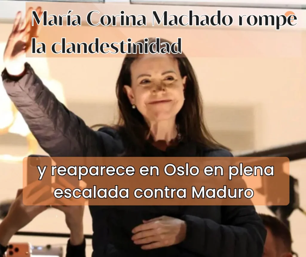 La reaparición de María Corina Machado en Oslo tras más de un año en la clandestinidad abre un capítulo decisivo en la crisis política venezolana. Su presencia en la capital noruega —en el marco del Nobel, con procesos penales activos y en un contexto de confrontación geopolítica— reconfigura el escenario interno e internacional. Los pronunciamientos que haga en las próximas horas definirán el alcance político de este retorno y su impacto en el futuro inmediato de Venezuela.