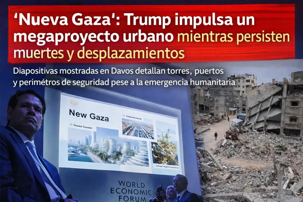 Estados Unidos presentó en el Foro Económico Mundial de Davos un plan para reconstruir completamente la Franja de Gaza tras más de dos años de guerra, mediante un rediseño urbano a gran escala que contempla rascacielos, nuevas infraestructuras portuarias y aeroportuarias, desmilitarización del territorio y un esquema de seguridad prolongado, en un contexto marcado por un alto el fuego frágil, miles de víctimas civiles y profundas objeciones políticas.