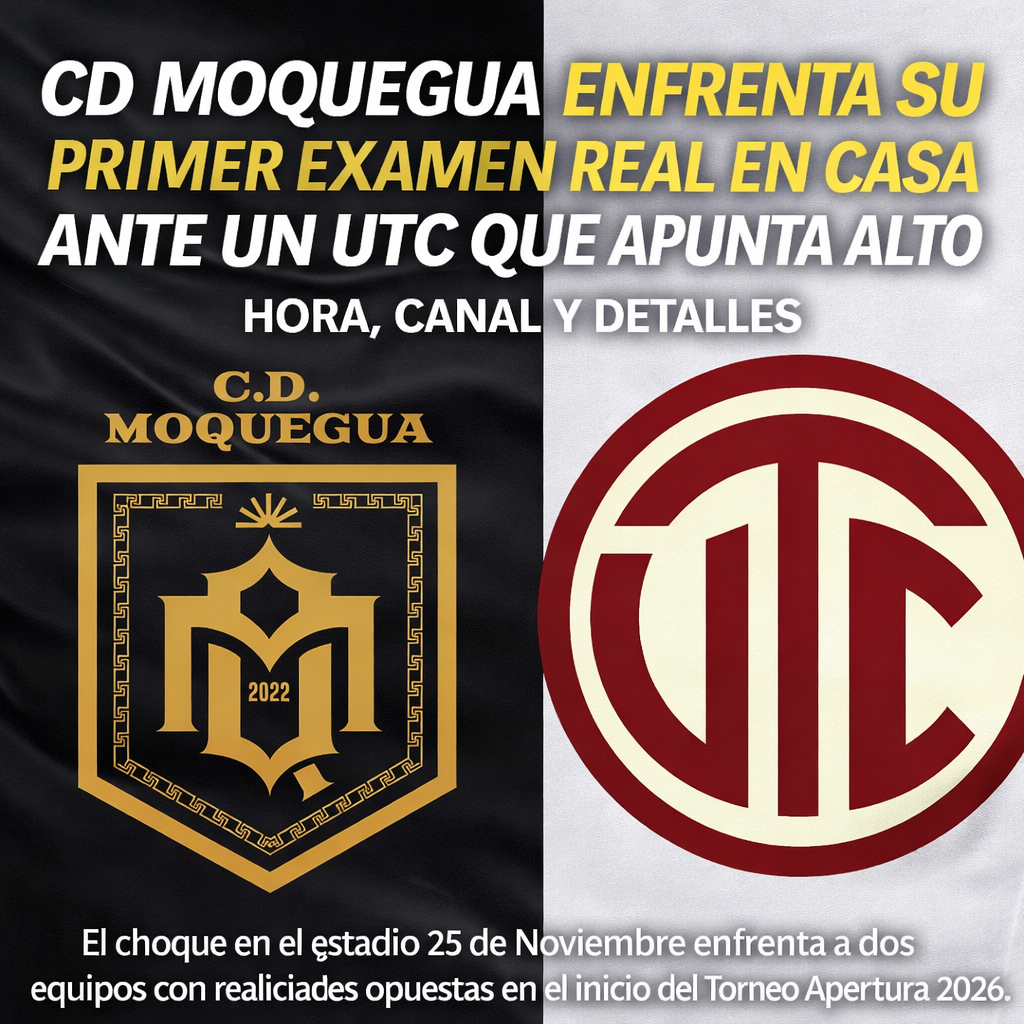 El enfrentamiento entre CD Moquegua y UTC abrirá el primer compromiso como local del club sureño en su historia en la Liga 1 2026 y pondrá a prueba el arranque competitivo de ambos equipos. El resultado contribuirá a definir las tendencias deportivas iniciales del Torneo Apertura en una jornada que reúne a clubes con objetivos contrastantes dentro del campeonato nacional.