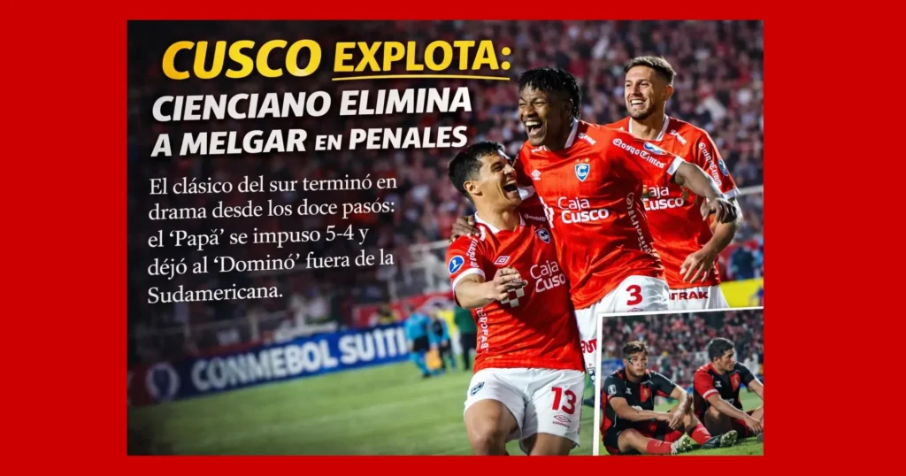 La victoria por penales permitió a Cienciano superar a Melgar en una nueva edición del clásico del sur y asegurar su clasificación a la fase de grupos de la Copa Sudamericana 2026. El resultado redefine el panorama internacional de ambos clubes: el conjunto cusqueño continuará en el torneo continental, mientras que el equipo arequipeño concentrará sus esfuerzos en la Liga 1 peruana.