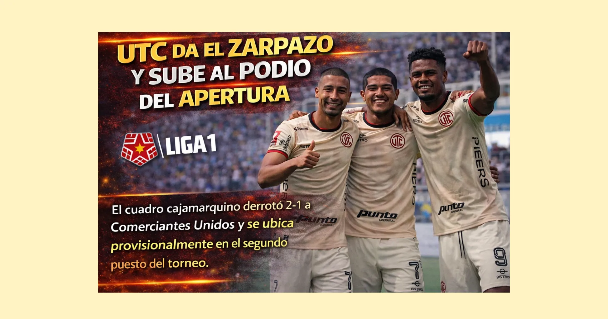 El triunfo en Cutervo permite a UTC mantenerse en la pelea por los primeros lugares del Torneo Apertura, en un campeonato que continúa mostrando una tabla ajustada y competitiva en sus primeras jornadas. La evolución de los resultados en las próximas fechas definirá la estabilidad del equipo cajamarquino en la parte alta de la clasificación.